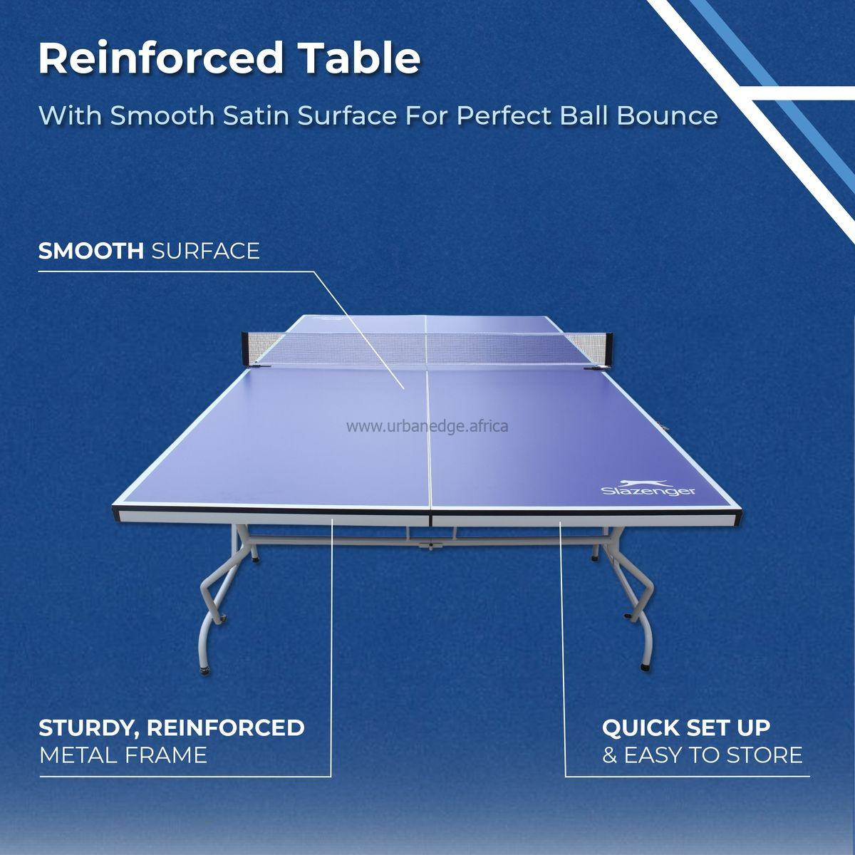 The Slazenger Table Tennis Table with Net brings fun, fitness, and friendly competition to your home or office in Harare. Designed with a smooth MDF playing surface and a sturdy metal frame, it delivers consistent bounce and durability for long-lasting use. Its foldable, space-saving design allows easy storage and portability, making it ideal for indoor play. Suitable for all ages, this table tennis set provides quick setup and endless entertainment for family and friends.